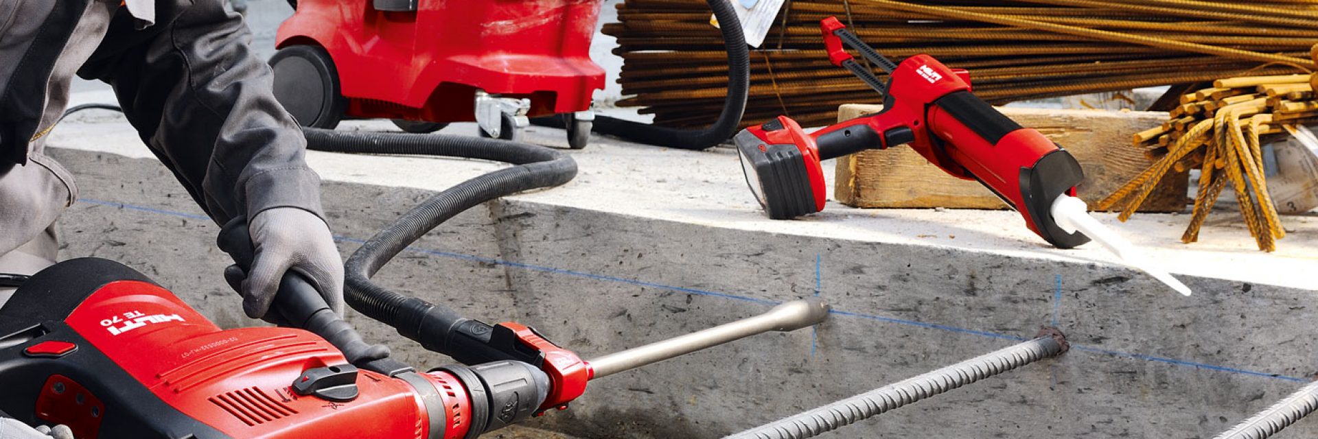 - Abgedeckte Bohrverfahren (Hammerbohrenund Hohlbohren). Teil des Hilti SafeSet-Systems – keine zusätzliche Bohrlochreinigung nötig bei Verwendung von TE-CD oder TE-YD Hohlbohrern in Verbindung mit Hilti Bausaugern