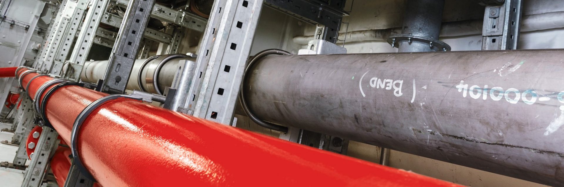 Halterungen für Rohrleitungen werden meist an der Tunnelauskleidung befestigt. Diese Systeme werden auch in technischen Räumen, Luft- oder Wasseraufbereitungsanlagen und Sicherheitstunneln eingesetzt.