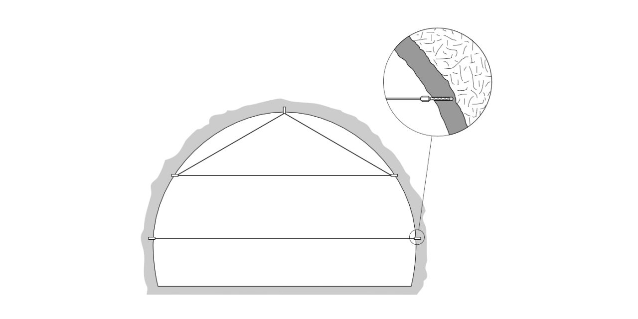 Zur Feldvermessung werden Benchmarks und Fixpunkte entlang des Tunnels benötigt. Zusätzlich werden Extensometer installiert, um die Konvergenz des Tunnelquerschnitts zu steuern.