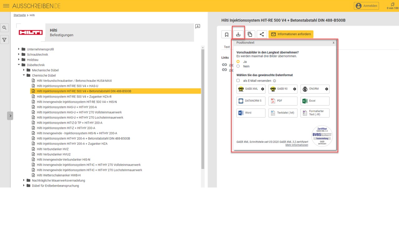 Hilti ist mit seinen planungsrelevanten Produkten und Anwendungen auf der Plattform ausschreiben.de mit Ausschreibungstexten für Fachplaner vertreten. Ohne Registrierung und rund um die Uhr finden Sie die Ausschreibungstexte untergliedert nach relevanten Produktbereichen.