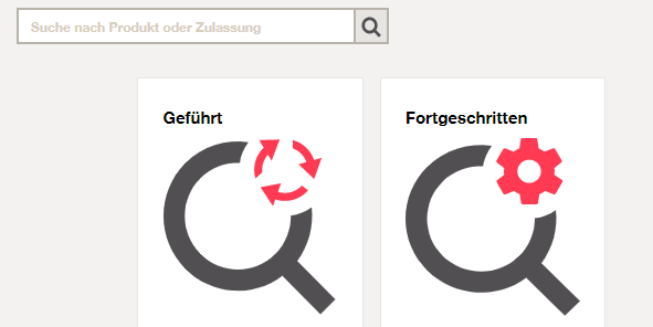 Wählen Sie zwischen der geführten, erweiterten und direkten Suchfunktion aus, um eine Lösung für Ihre individuellen Durchbruchszenarien zu finden oder um mehr über eine bestimmte Zulassung zu erfahren.