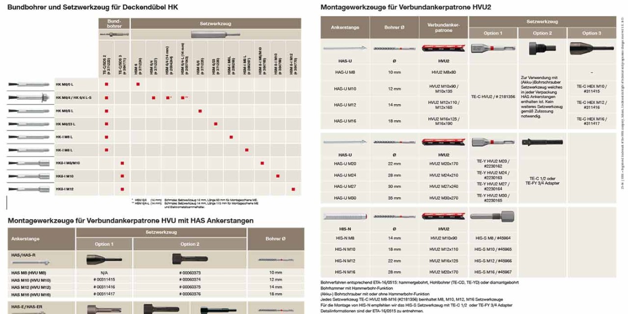 Montagewerkzeuge für HK, HVU, HAS, HVU2, HWB, HDA, HSC und HCC