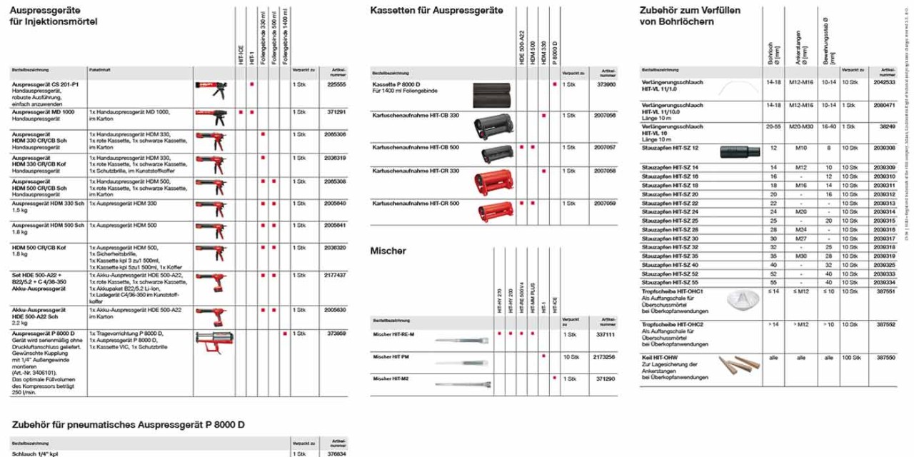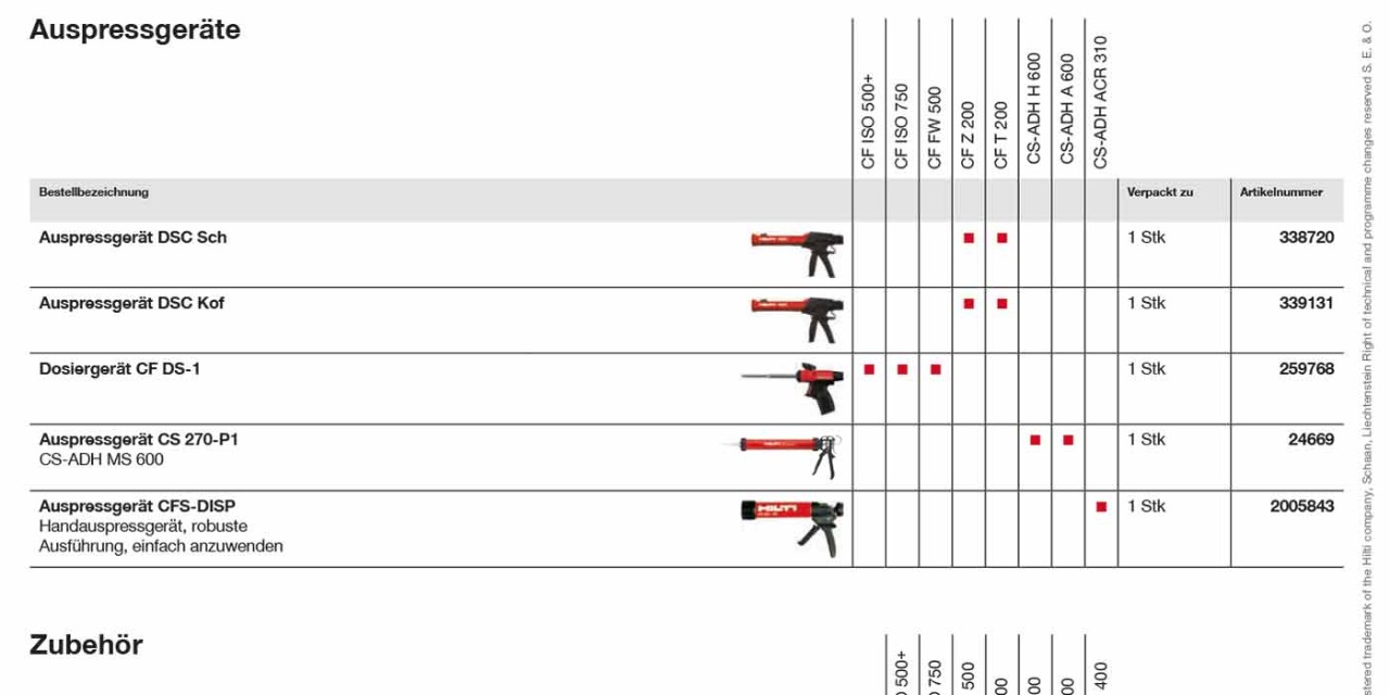Auspessgeräte und Zubehör für Injektionsmörtel