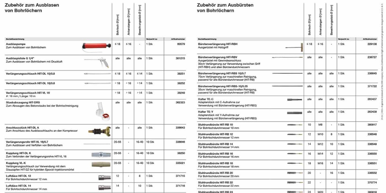 Zubehör zum Ausblasen und Ausbürsten von Bohrlöchern