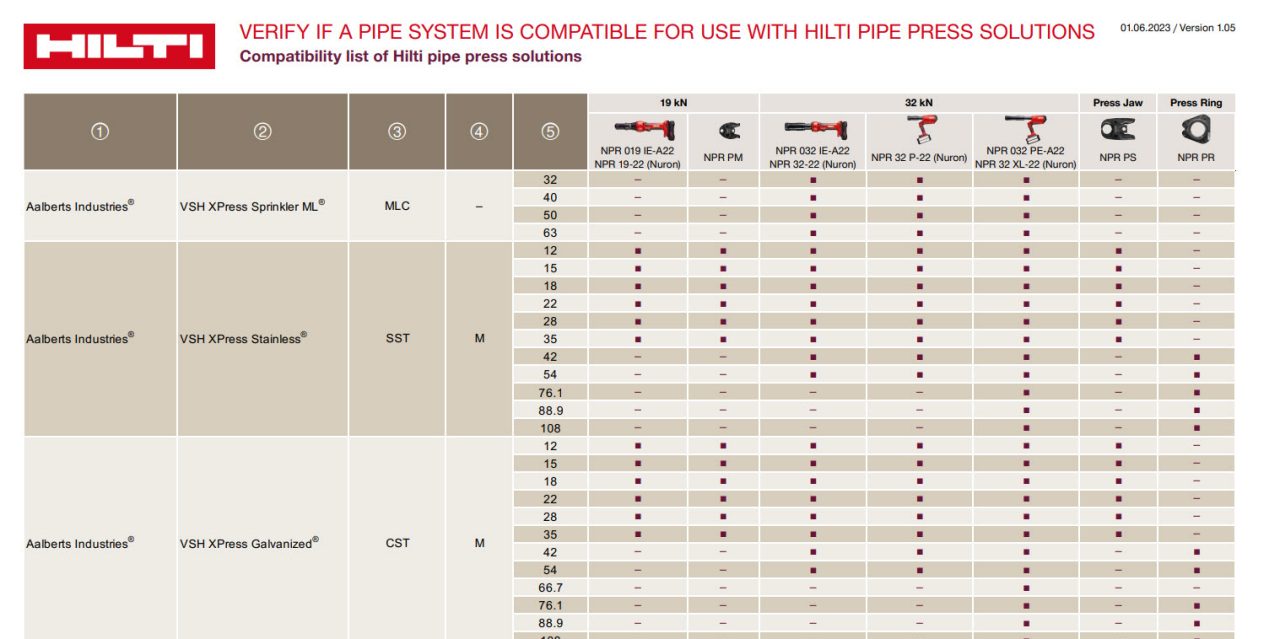 Leitfaden zur Kompatibilität von NPR Rohrpressen