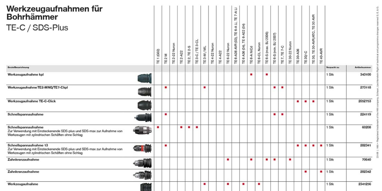 Werkzeugaufnahmen Bohrhämmer TE-C, SDS-Plus