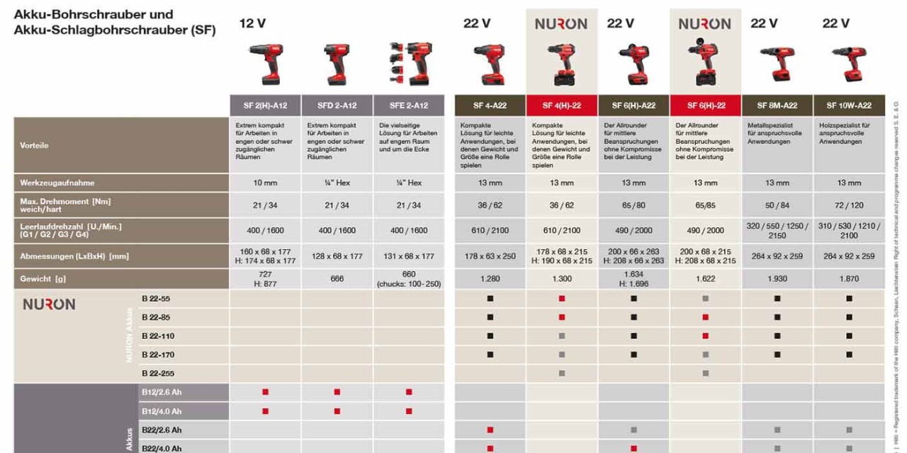 Akku-Bohrschrauber und Akku-Schlagbohrschrauber SF