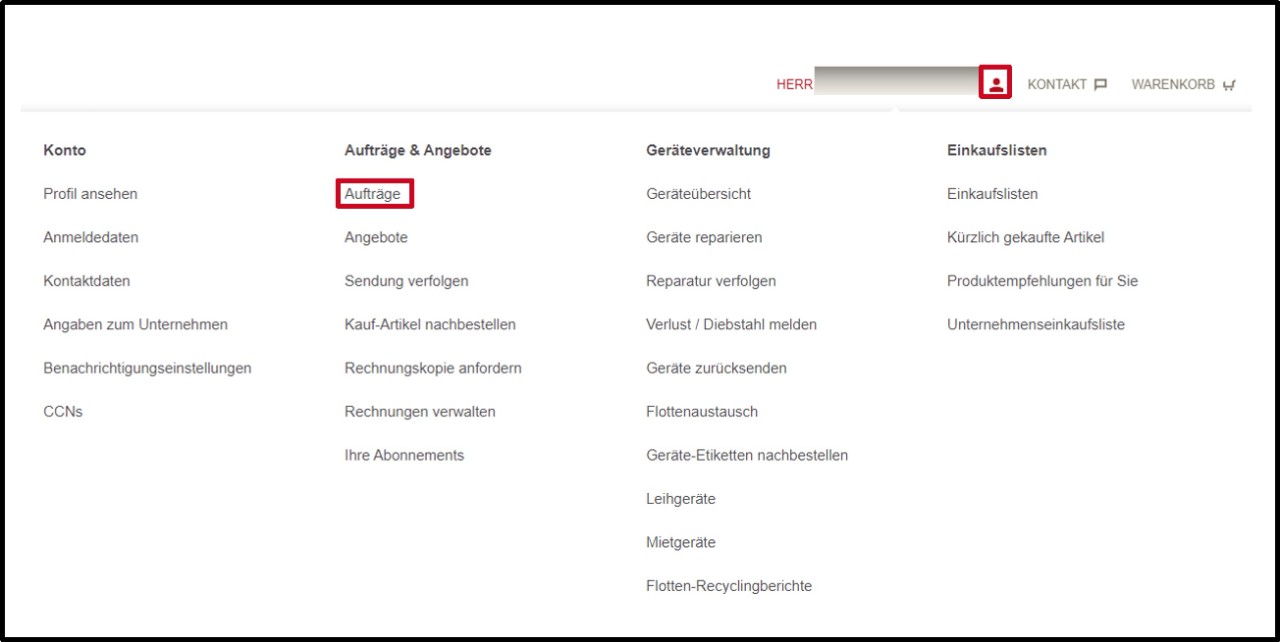 Gehen Sie auf Ihren Kontakt und wählen Sie im Bereich Aufträge und Angebote den Unterpunkt Aufträge aus.