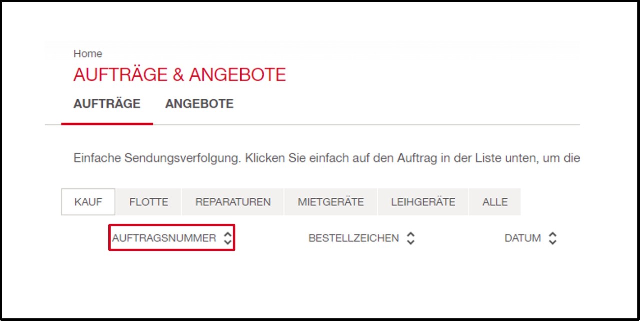 Wählen Sie in der Spalte Auftragsnummer den gewünschten Auftrag aus.