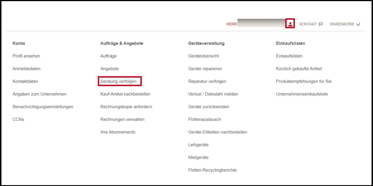 Gehen Sie auf Ihren Kontakt und wählen Sie im Bereich Aufträge und Angebote den Unterpunkt Sendung verfolgen aus.